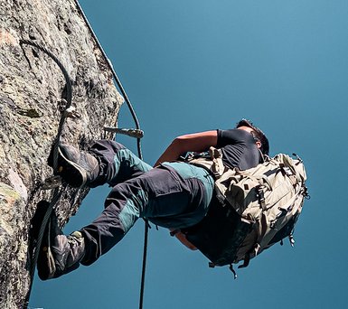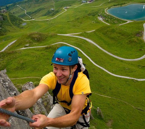Wichtig für sicheres Begehen von Klettersteigen: die richtige Ausrüstung. Dazu gehören neben festem Schuhwerk auch Klettergurt, Klettersteigset und Kletterhelm. Nicht dabei? Dann leihe dir die beste Ausrüstung bei Intersport Fleiß oder bei der Angerer Ski- und Alpinschule aus!
