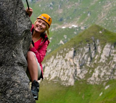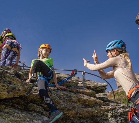 Spaß und Action für die ganze Bande bietet der Klettersteig Hirschinger. Mit verschiedenen Aufstiegsvarianten und lustigen Fun-Elementen wie Seilbrücken und einem Flying Fox gilt die Route als alpines Highlight in den Schwierigkeitsgraden von B/C bis D/E.
