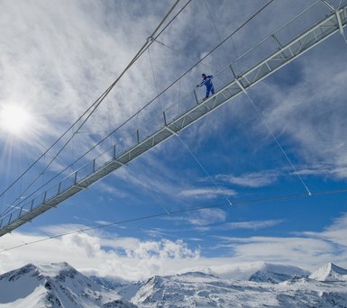 Der kurze Klettersteig mit Schwierigkeitsgrad B/C am Mauskarkopf bietet mittelschwere Kletterpassagen und führt auf die 2.373 Meter hohe Mauskarspitze. Besonderes Highlight: die Überquerung einer 30 Meter langen Seilbrücke mit atemberaubendem Blick in die Tiefe.