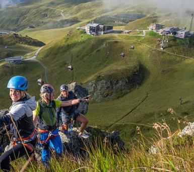 Ob Anfänger:in oder Profi – auf den acht Klettersteigen auf der Schlossalm genießen Kletterfans unvergessliche Erlebnisse am Fels und entlang alpiner Grate. Höhen erklimmen, sich selbst herausfordern und dabei die grandiose Aussicht bewundern – das ist Klettern in Skigastein. Wir haben Informationen über spektakuläre Klettersteige mit Panoramablick und zu geführten Touren in Skigastein für dich zusammengefasst.