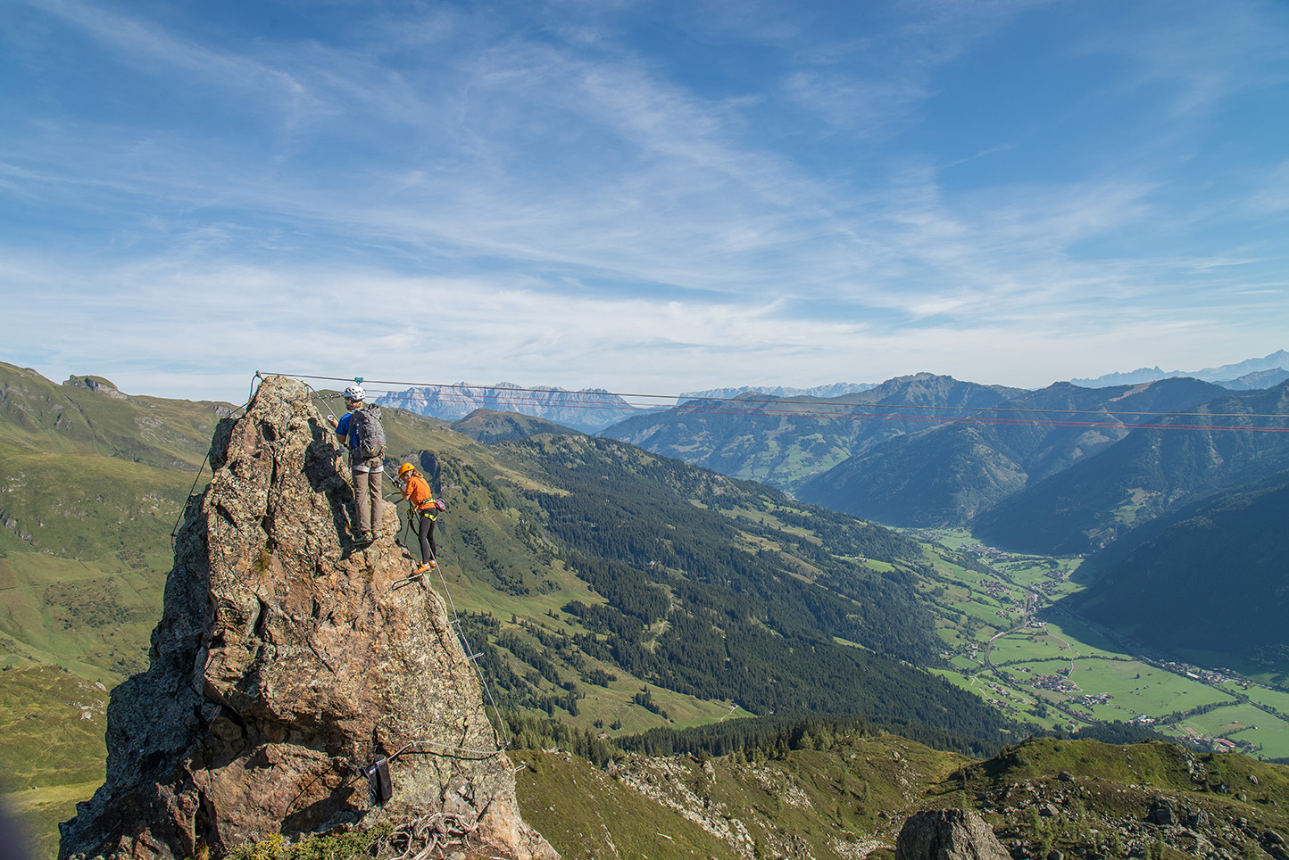 Wichtig für sicheres Begehen von Klettersteigen: die richtige Ausrüstung. Dazu gehören neben festem Schuhwerk auch Klettergurt, Klettersteigset und Kletterhelm. Nicht dabei? Dann leihe dir die beste Ausrüstung bei Intersport Fleiß oder bei der Angerer Ski- und Alpinschule aus!