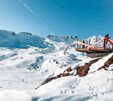 Der majestätische Stubnerkogel gilt als ultimativer Aussichtsberg in Skigastein. Ein besonderes Highlight: der nördliche Panoramablick über Bad Hofgastein auf der Aussichtsplattform Talblick. Auf den hölzernen Sitzstufen kannst du dich niederlassen und den Blick in die Tiefe und über das beeindruckende Bergpanorama schweifen lassen. Ein weiterer Eyecatcher: die Panorama-Wandscheibe entlang der Treppe.