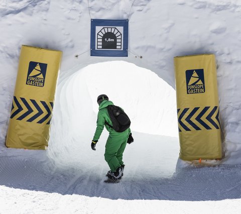 Vergiss alles, was du über Pisten weißt! Die Funslope Gastein führt dich durch Schneetunnel, über Wellenbahnen und über mächtige Hindernisse. Eine coole Bühne für deine Ski- oder Snowboardperformance, ganz im Dienste deiner Skills. Ein digitaler Blitzer misst deinen Speed auf den Bretteln.