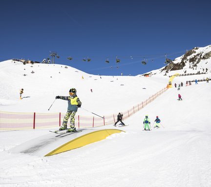 Auf den 900 Pistenmetern der Funslope weht ein frischer Schneesport-(Fahrt-)Wind: In diesem speziell für Snowboard- und Skikünstler:innen abgegrenzten Bereich warten coole Hindernisse diverser Schwierigkeitsgrade darauf, von dir bezwungen zu werden.