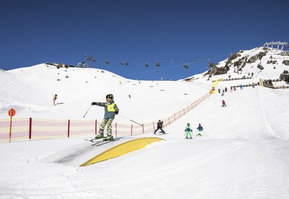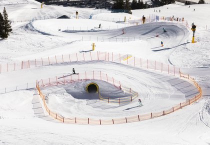 Wie werden im Gasti Schneepark aus Skianfänger:innen kleine Schneesportprofis? Mithilfe einer Vielzahl von Übungselementen, die Kinder spielerisch zum perfekten Skischwung führen! Ist der Hang gemeistert, geht’s mit den Förderbändern zurück an den Start.