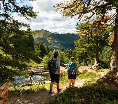 Die leichte Familienwanderung beginnt zentral an der Bergstation der Gipfelbahn-Fulseck. Der beschilderte Weg führt dich zunächst über den Biotopensteig an einigen Tümpeln und magischen Kraftplätzen vorbei. Dein erstes Etappenziel: das Arltörl. Die dortige Kapelle lädt zum Innehalten ein, bevor du dann links durch den Wald in Richtung Grabnerhütte gehst. Ab hier beschreitest du den eigentlichen Jagasteig. Mit Holz umrandete Schautafeln am Wegrand bieten dir auf deiner Wanderung Informationen über heimische Tiere. Aufmerksame Besucher:innen erspähen auf dem Pfad durchs Grüne mit etwas Glück den einen oder anderen Naturbewohner.