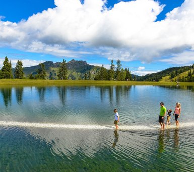 Zu alpinem Gewässer und schroffen Felsen – und dabei einmal quer durch den Zirbenzauber. Verbinde zwei sehenswerte Naturjuwelen miteinander und begib dich auch eine Genusswanderung!